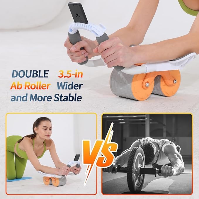 - 【DOUBLE WHEEL DESIGN】This exercise abs roller has a wider front and back two wheels for smooth rolling and better control. It helps you work out every muscle and in your core and at the same time provides safer control of your body, especially for beginners.